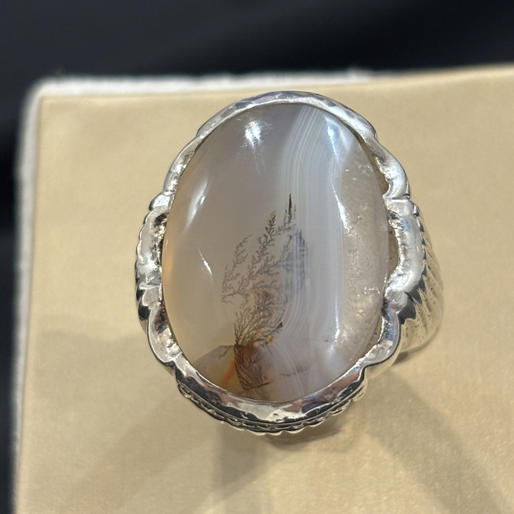 - تصميم خاتم عقيق مشجر أنيق من فضة عيار 925 يضيف لمسة فاخرة لشخصيتك.
